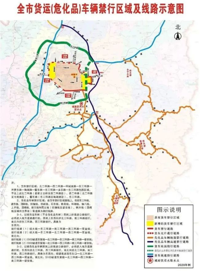 1.禁行線路:在上述貨運(yùn)車輛禁行區(qū)域基礎(chǔ)上,增加?xùn)|三環(huán)路、諸東線、浬斯線、街璜線、街新線、石東線、陳吳線、環(huán)湖線、璜八線、上齊線、浬鬧線、新王線和周義線(街璜線至諸安線)、楓谷線(浬鬧線至嵊州交界處)等道路為禁行線路。
