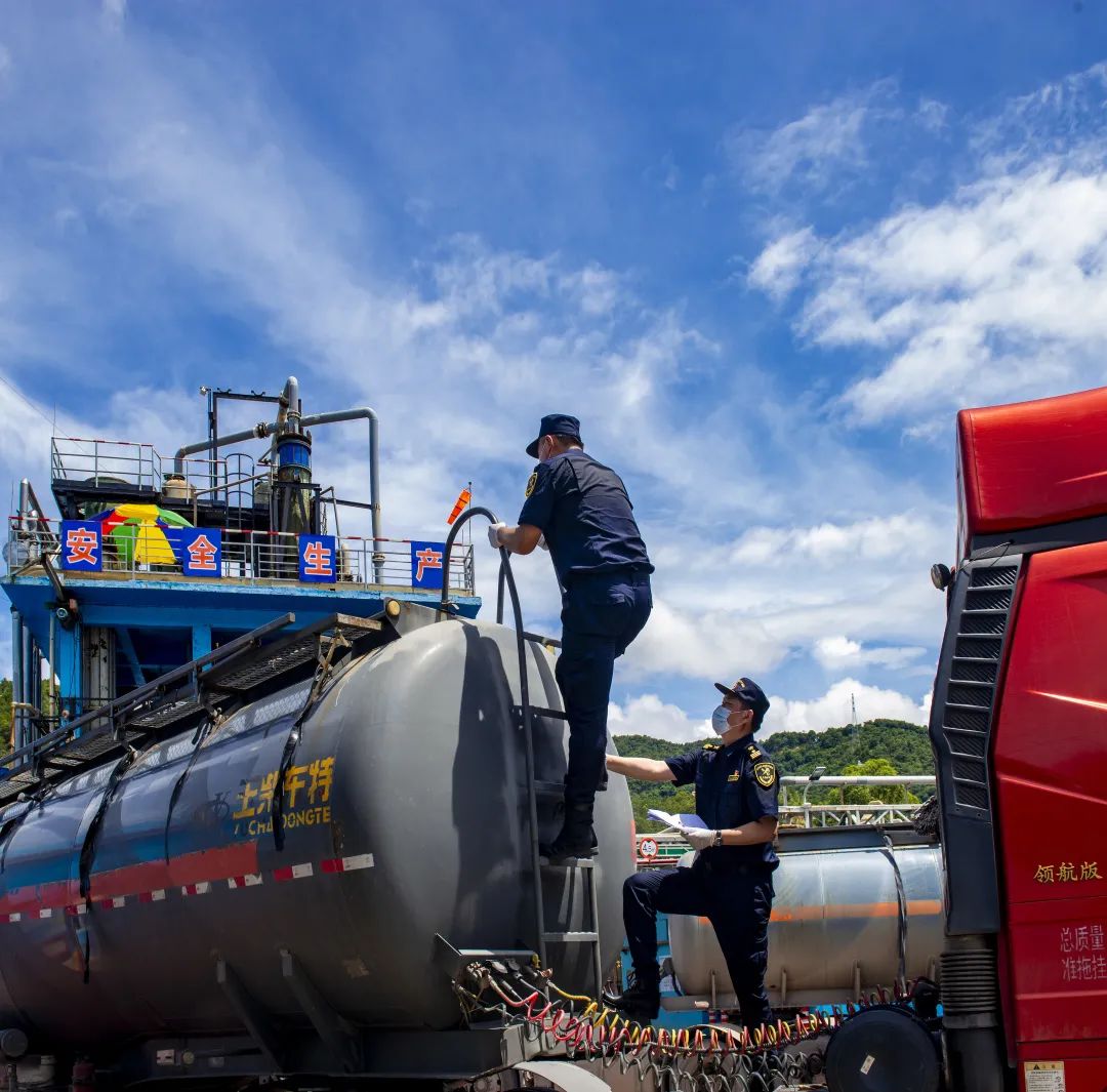 海關(guān)關(guān)員在查驗(yàn)危險化學(xué)品及包裝